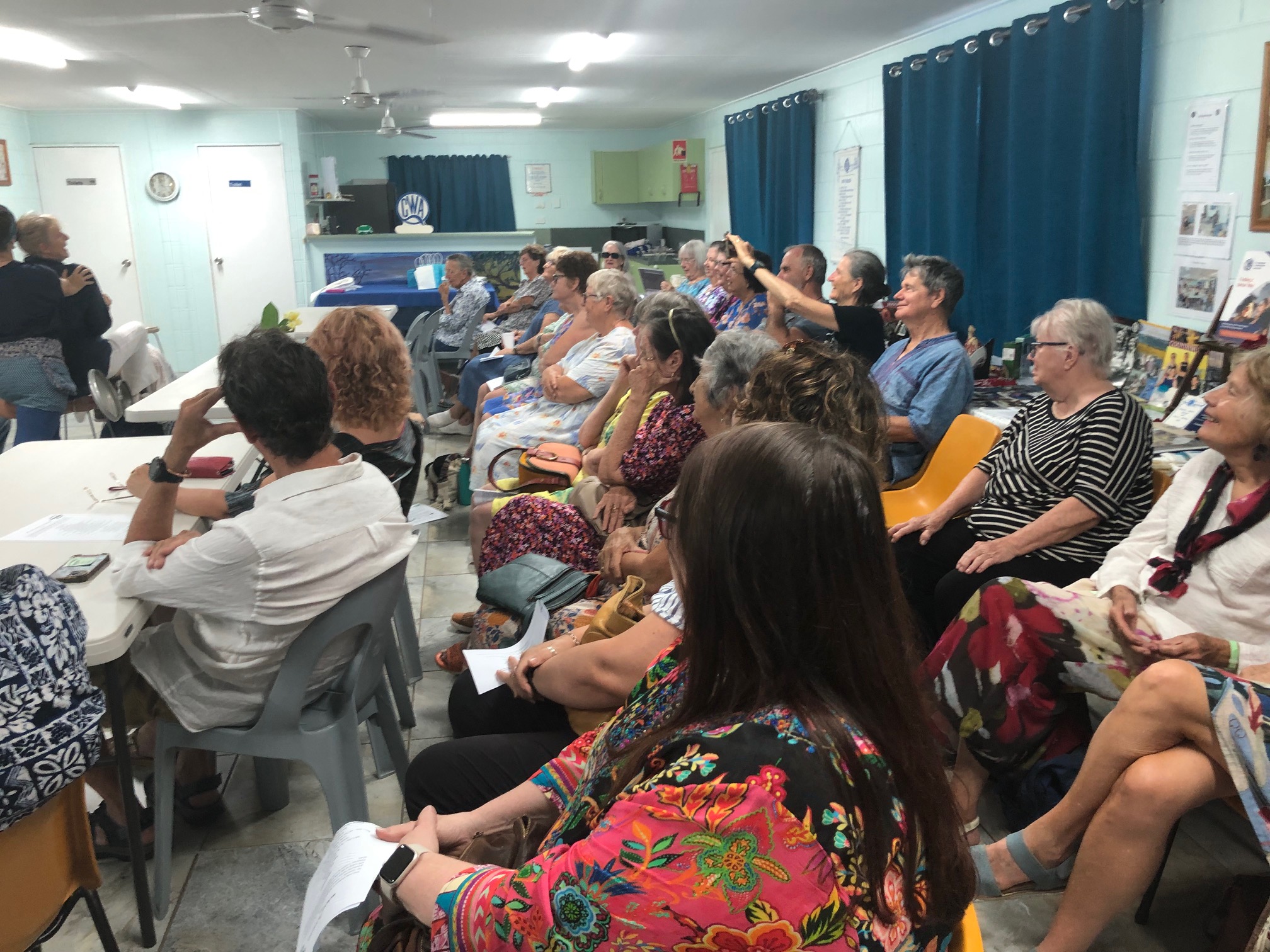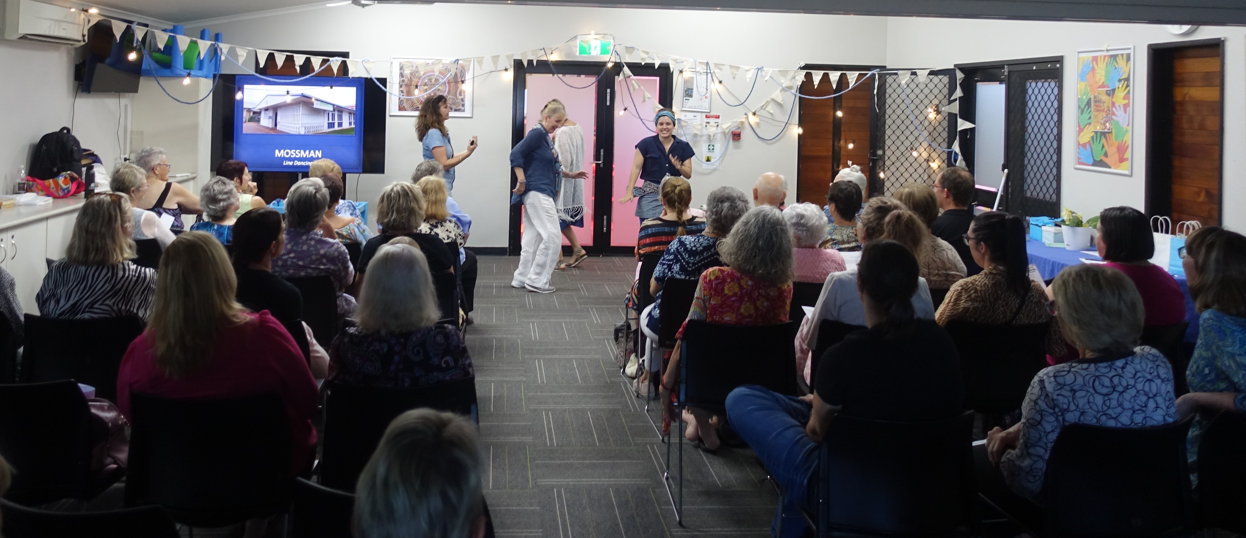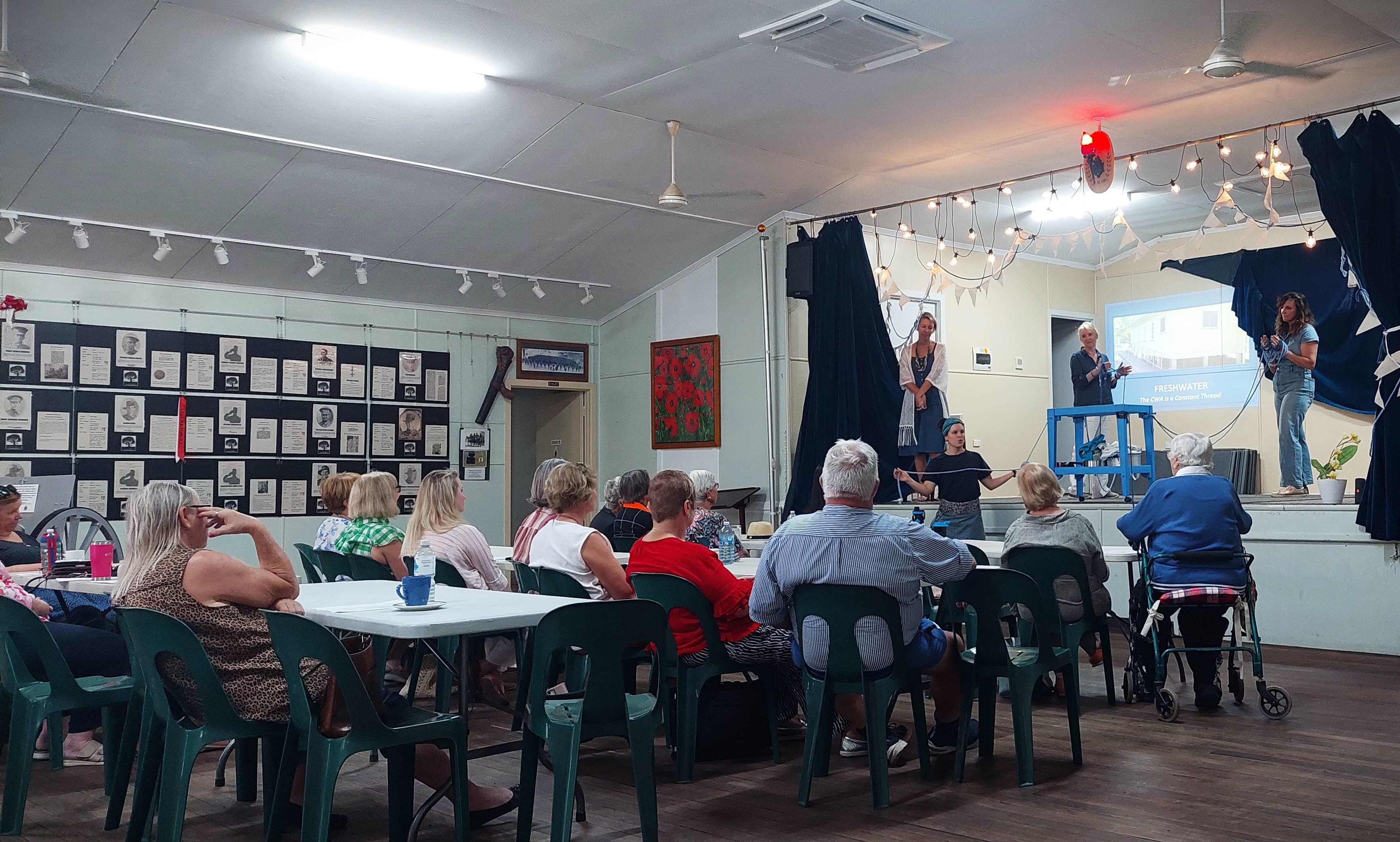 Research & Development (Stages 1 & 2, Aug 2021- April 2023) – oral histories were taped and transcribed from interviews with QCWA members from the Far Northern & Atherton Tablelands Divisions including, running a soup kitchen in Cooktown, line dancing at Mossman and disaster support provided in the aftermath of cyclones.The stories reflect resilience, strength, friendship and history. Audio files complement the photography of QCWA members and Halls. The collated material underwent  a creative development (March 2022) with actors, a director, the writer and a projectionist, culminating in a presentation of outcomes to QCWA members, creatives and the public.  It showcased the work, gathered feedback and production ideas.  Exerts of the work were shown at the CWA’s Northern Conference in June 2022 and to the public in November 2022. After which further changes were made and the project  advanced to the next stage.