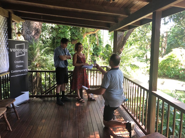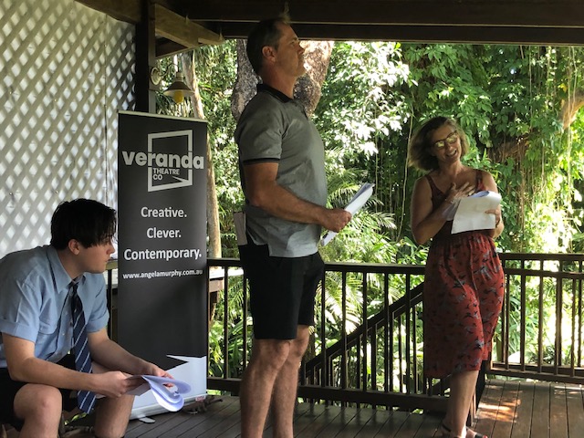 A stellar cast of local actors performed Survival Instincts, the award-winning Short & Sweet play that resonated with audiences around Australia in 2010. The event was a world first theatrical treat to mark the launch of the Veranda Theatre Co on 25 July, 2020. Fittingly, the play was performed on the veranda at Angela’s home in Freshwater, Cairns.